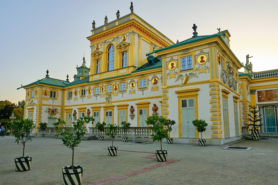A finales del s. XVI uno de los reyes polacos decidió trasladar la capital a Varsovia, cuya localización fue más cómoda para gobernar un país de dimensiones bastante más grandes que las actuales. En los siglos XVII y XVIII el progreso económico y político de Polonia continuó, llenando Varsovia de nuevas residencias para los sucesivos reyes y de los palacios de familias aristocráticas que pretendían estar cerca del centro del poder. La capital de Polonia cuenta con hasta tres residencias: Castillo Real, Łazienki y Wilanów. Las tres se encuentran a lo largo de la Ruta Real que terminaba precisamente en Wilanów. Merece la pena empezar la visita por el más antiguo: el Castillo Real, en el casco antiguo, que es también un museo de arte. Destacan obras de grandes dimensiones que cuentan hechos históricos, por ejemplo, el cuadro La Constitución del 3 de mayo de Jan Matejko (1838-1893) que ilustra la proclamación de la primera constitución europea de la era moderna (1791).