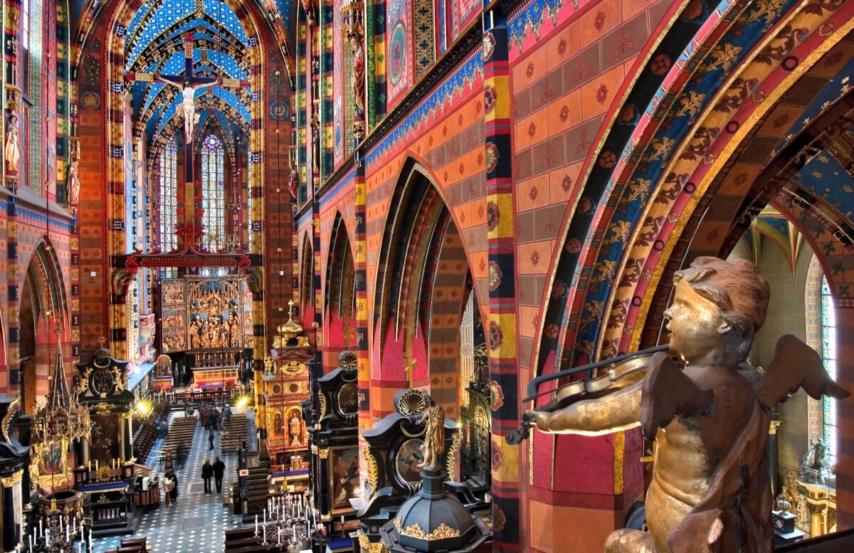 Situada en la Plaza del Mercado, la basílica de Santa María es uno de los símbolos de Cracovia, gracias a su leyenda y las peculiaridades arquitectónicas. Uno de los atractivos de la iglesia es el toque de la trompeta, que se puede escuchar todos los días al mediodía desde la torre más alta.