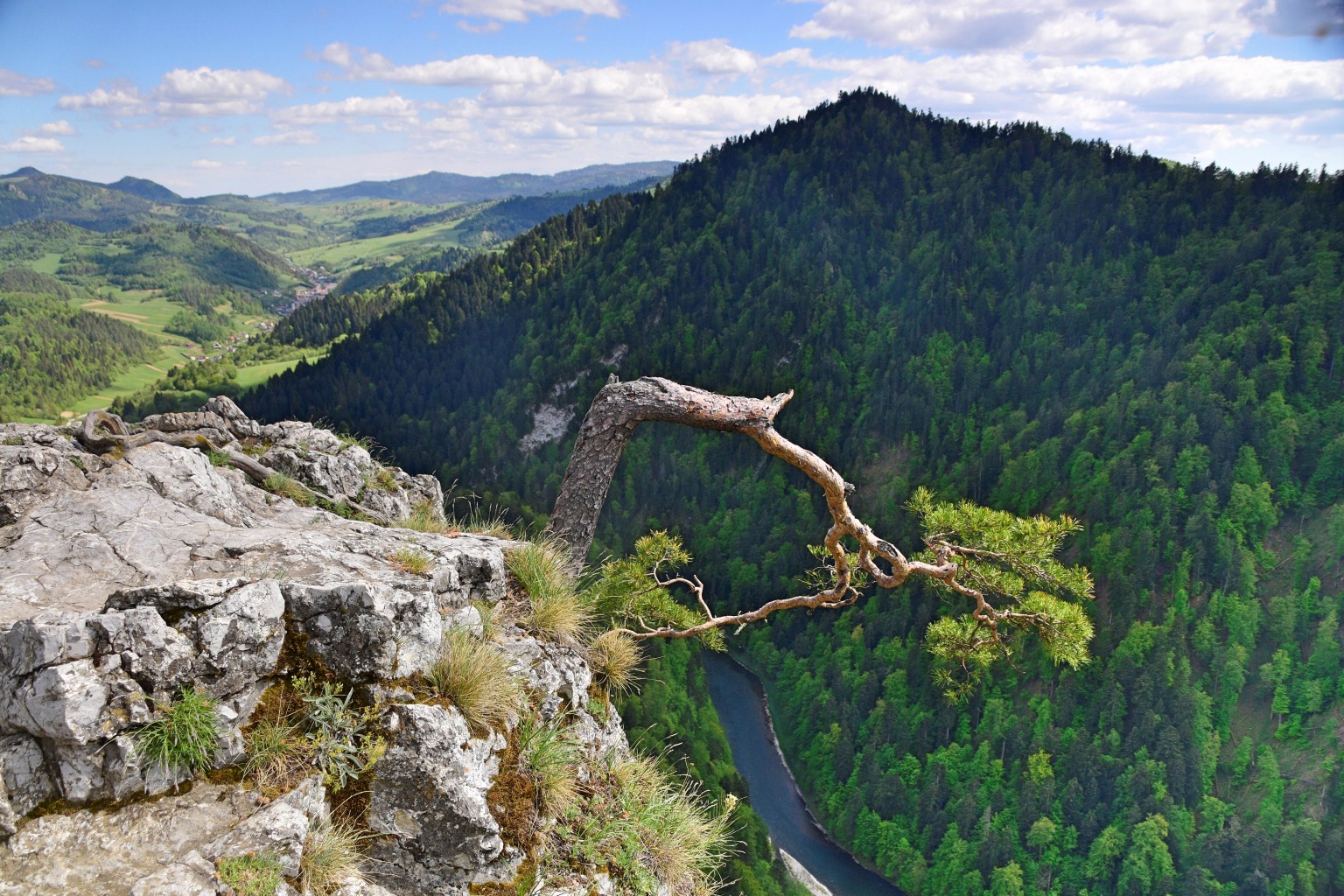 Estas cimas se distinguen por su variadas formas. Los pintorescos parajes abruptos y laderas sinuosas se elevan sobre el Dunajec hasta varios cientos de metros, permitiendo que los turistas pueden admirar durante su descenso en balsa los paisajes que nos regala la naturaleza. El rico manto vegetal presenta muchas especies endémicas y posglaciares, como el „diente de león” de los Pienines (terexacum pieninicum) y el „erysimum pieninicum„, un raro alhelí gigante endémico que se encuentra en Polonia.