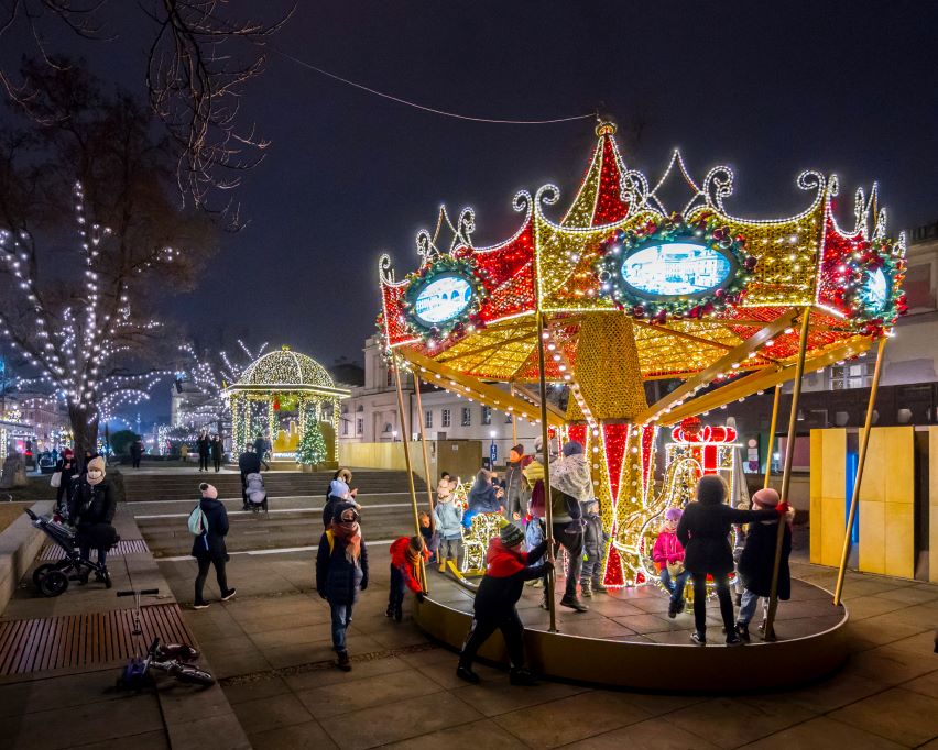La capital polaca suele inaugurar su iluminación navideña cerca del Día de San Nicolás (el 6 de diciembre). El árbol de Navidad natural se coloca tradicionalmente en el pleno corazón del casco Antiguo de Varsovia, delante del Castillo Real. En otra de las plazas cercanas, se podrán encontrar la famosa pista de hielo, la cual rodea la estatua de la Sirenita de Varsovia, pudiendo disfrutar de las vistas mientras te encuentras encima de la pista.