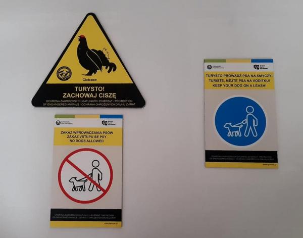 Para una mejor orientación de los turistas, hay señales cerca de los tramos donde se puede hacer senderismo con perro y donde la entrada está prohibida.