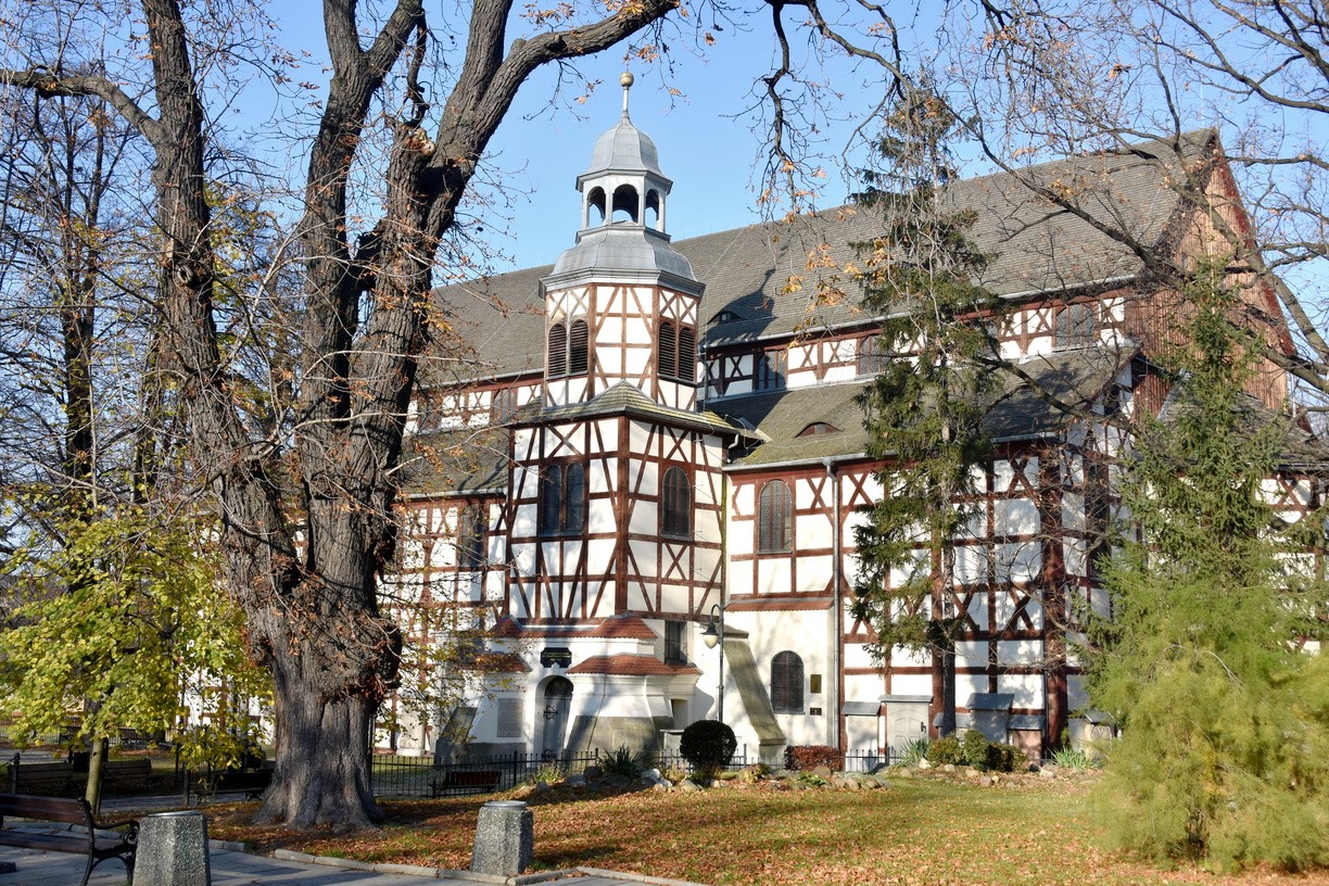 Entrambe le chiese furono costruite nella seconda metà del XVII secolo, quando i sudditi di Ferdinando III d’Asburgo ricevettero il permesso di costruire tre luoghi di culto (il terzo, la chiesa di Głogowo, cessò di esistere già nel XVIII) che però non potevano essere costruiti dentro le mura delle città, né assomigliare ad altre chiese o avere dei campanili. Le costruzioni vennero quindi erette su strutture portanti in legno, edificate con mattoni di paglia e argilla.