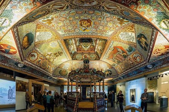 박물관 1층의 방에는 내부 장식과 골조가 드러난 천장이 원형 그대로 보존되어 있습니다. 천장에는 그림이 그려져 있으며 벽은 프리즈로 장식되어 있습니다. 박물관이 사용하는 궁전 뒤편에는 17세기에 조성된 아름다운 이탈리아식 정원이 자리합니다.