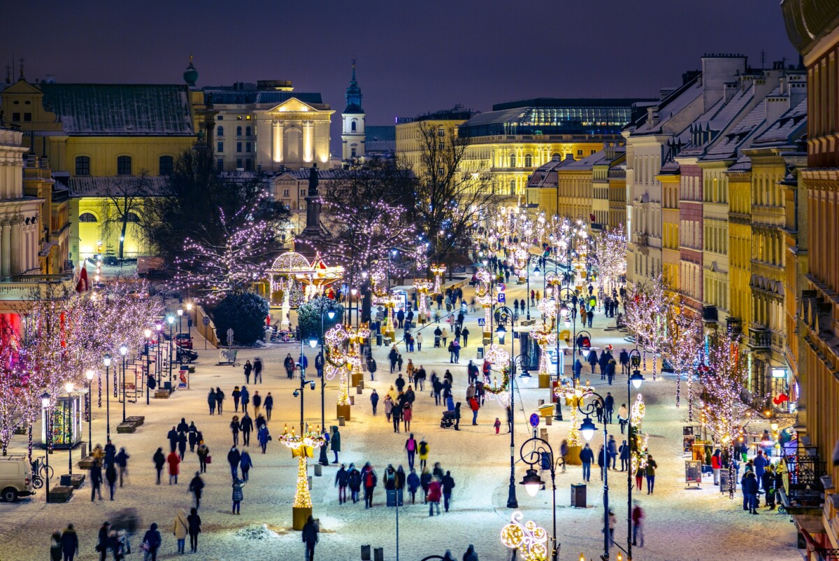 A capital polaca costuma inaugurar a sua iluminação de Natal por altura do Dia de São Nicolau (6 de dezembro). A árvore de Natal natural é tradicionalmente colocada no coração da Cidade Velha de Varsóvia, em frente ao Castelo Real. Numa das praças próximas, poderás encontrar a famosa pista de gelo que rodeia a estátua da Sereia de Varsóvia – patinar ali permite-te desfrutar da vista enquanto te divertes.