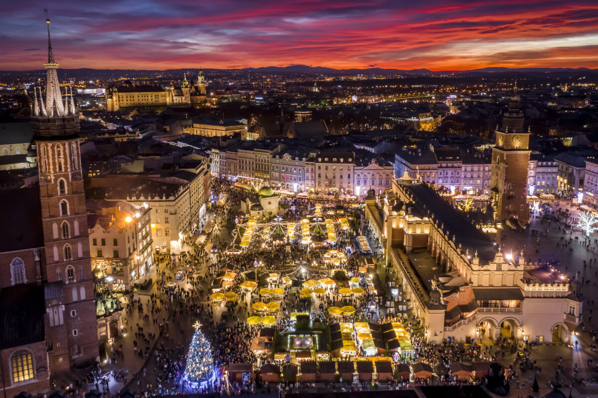 A Rynek de Cracóvia foi, em tempos, a maior praça medieval de toda a Europa. Hoje, em dezembro, transforma-se no cenário de um dos mercados de Natal mais mágicos da Polónia. O espírito festivo atinge o seu auge na noite de Passagem de Ano, com uma programação recheada de atividades ao ar livre e concertos, que fazem desta cidade um dos destinos natalícios mais apelativos para se despedir do ano.